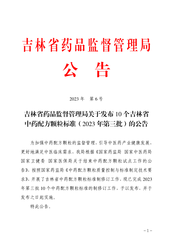 足球吧-足球推荐分析与交流论坛 关于发布10个吉林省中药配方颗粒标准(2023年第三批)的公告2023年第6号