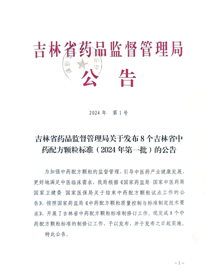 足球吧-足球推荐分析与交流论坛 关于发布8个吉林省中药配方颗粒标准(2024年第一批)的公告
