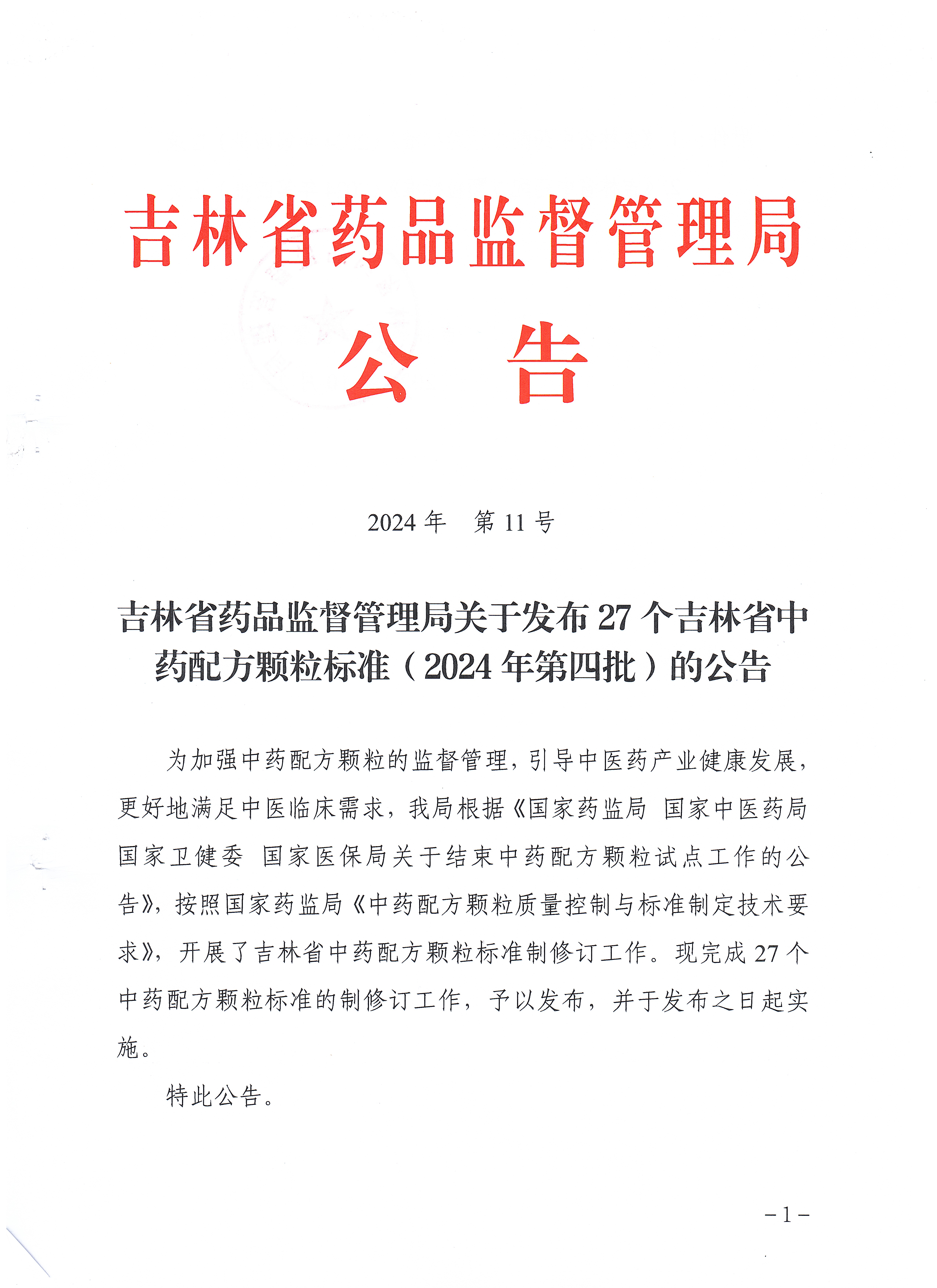 足球吧-足球推荐分析与交流论坛 关于发布27个吉林省中药配方颗粒标准(2024年第四批)的公告